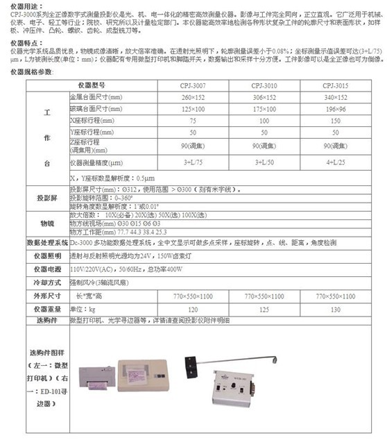測(cè)量投影儀